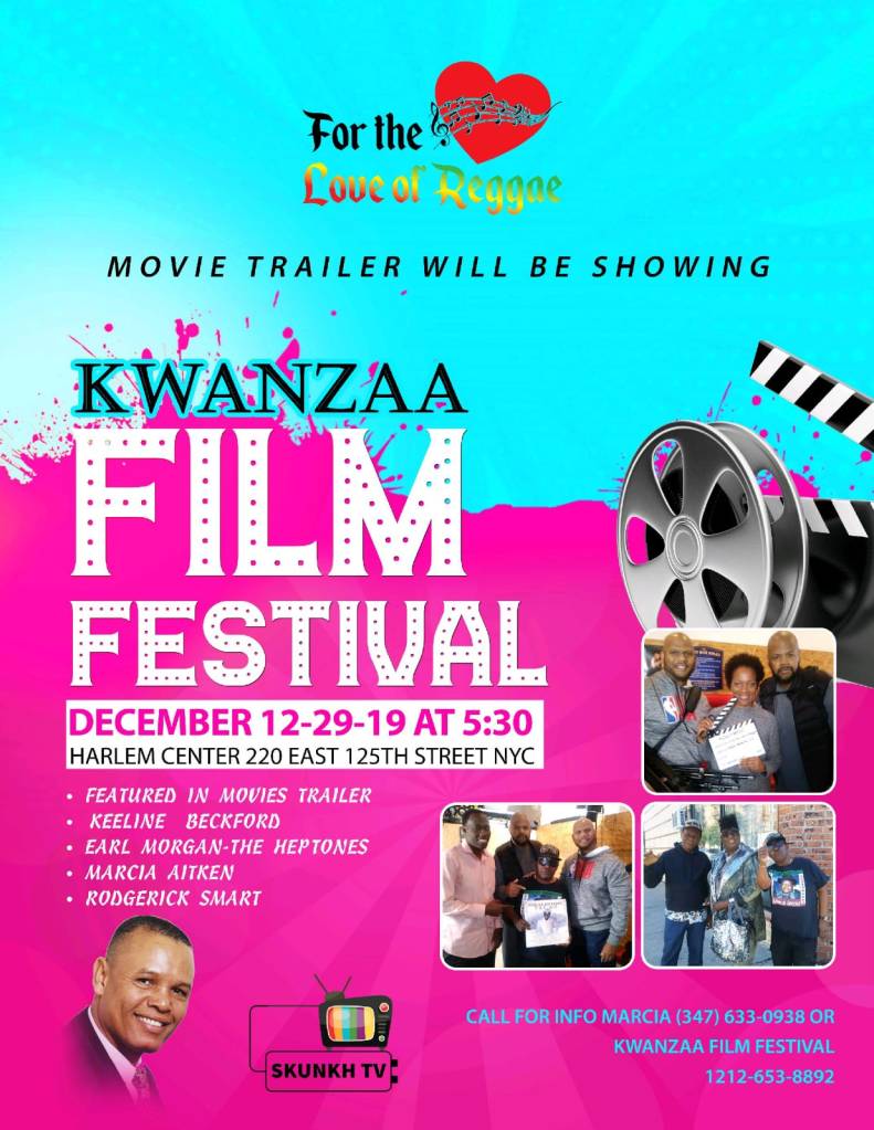 PLEASE COME OUT IN SUPPORT OF FOR THE LOVE OF REGGAE FILM TRAILER WHICH CAN BE VIEWED AT THIS YEAR’S KWANZAA FILM FESTIVAL. MALIK AND I WILL BE IN THE BUILDING, COME VIBE WITH US AND CHECKOUT ALL THE FESTIVITIES FOR THE DAY! CONTACT US FOR MORE DETAILS.